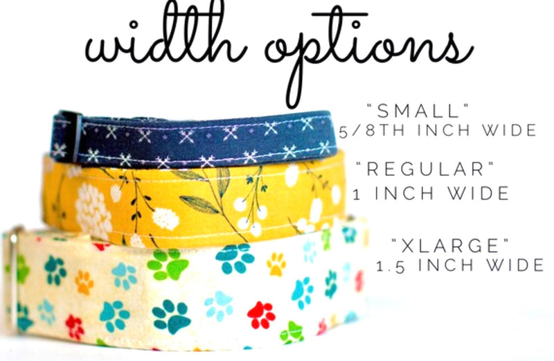 Fabric for collars: Each collar is made with either 100% cotton fabric or fleece. There is a wide variety of styles and patterns to make your collar as custom as you’d like. If you are not seeing an option you enjoy in the listing above, please message me to begin a custom order.