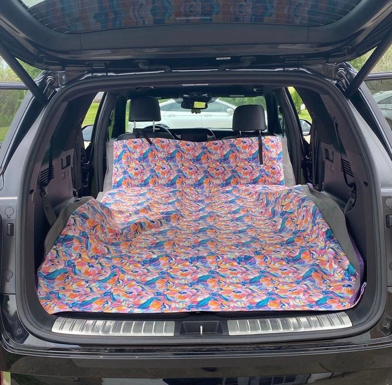 Car Seat Covers: Made with two layers of duck canvas or 100% cotton canvas upholstery fabric, this ensures a durable cover for your back seats again nails, dirty and hair. There is also 2 straps added to buckle around your headrests to keep the cover upright.