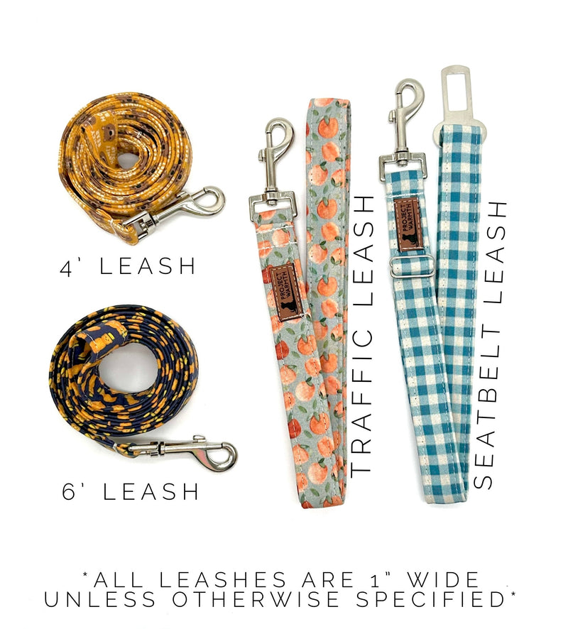 - All leashes are 1" width unless otherwise noted in the notes to seller at checkout.