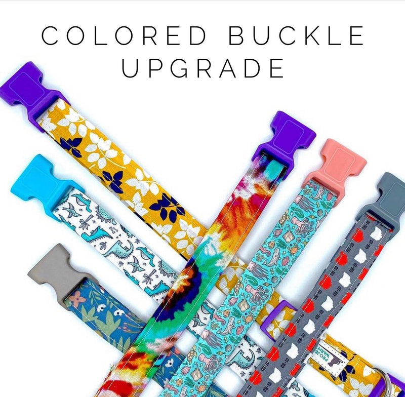 - If selecting the Colored Buckle option in the Buckle Type field, please note which color you'd like in the Special Instructions field during checkout: Tan, Brown, Bright Blue, Sand, Hot Pink, Hot Lime, Red, Purple, Rose Gold, White, Grey, Navy